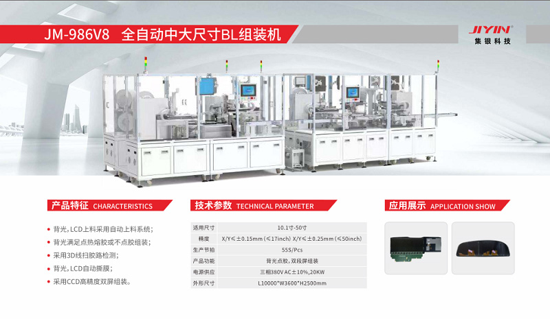 本次展會,集銀科技帶來了一系列平板顯示智能裝備解決方案亮相,包括:全自動小尺寸COF/COG綁定線、全自動中大尺寸COG綁定線、全自動小尺寸真空貼合線、全自動小尺寸OLED曲面貼合線、全自動背光組裝線、全自動背光源組裝線、非標自動化生產組裝線。每一個智能裝備解決方案都配有專屬的展示大屏,從業(yè)者們紛紛駐足觀看,并與現(xiàn)場工作人員密切交流。