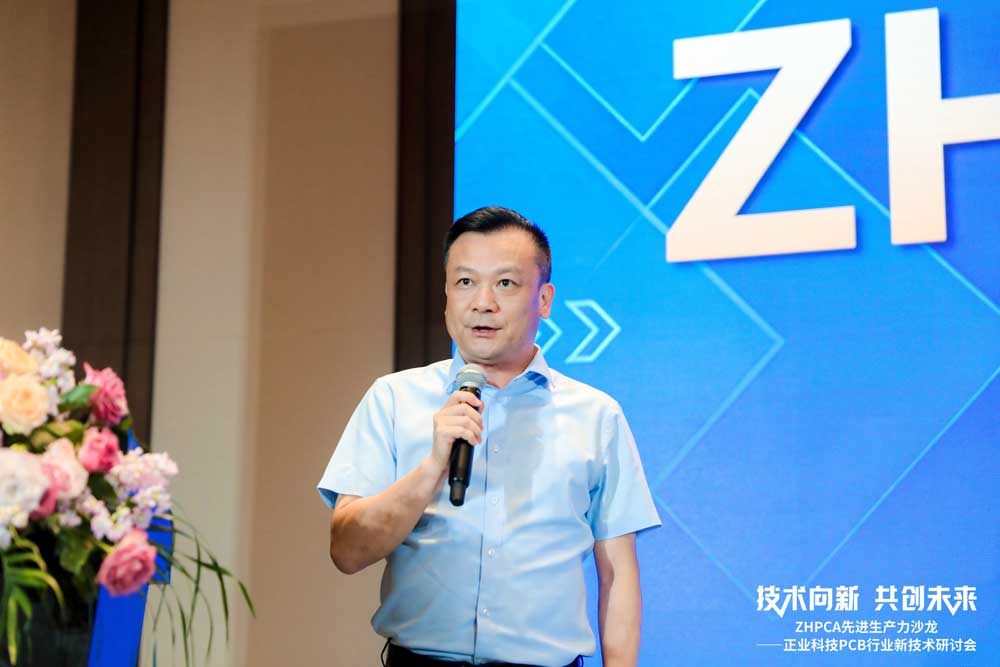 會議伊始,ZHPCA監事長謝杰領導為此次大會致歡迎詞,他熱烈的歡迎各會員單位的領導與代表,同時對正業科技股份有限公司的鼎力支持和全程贊助表示衷心的感謝!他表示,通過ZHPCA搭建這個學習、交流平臺,正業科技憑借其深厚的技術積累和廣泛的行業經驗,為我們帶來一系列解決方案,希望大家充分利用這次難得的學習機會,深入了解現有設備的新功能、新技術,更好地應用于企業生產和技改項目中,并不斷提升工藝技術管理水平,實現珠海地區線路板向更規范、更高技術含量和產業集群化方向高質量發展。