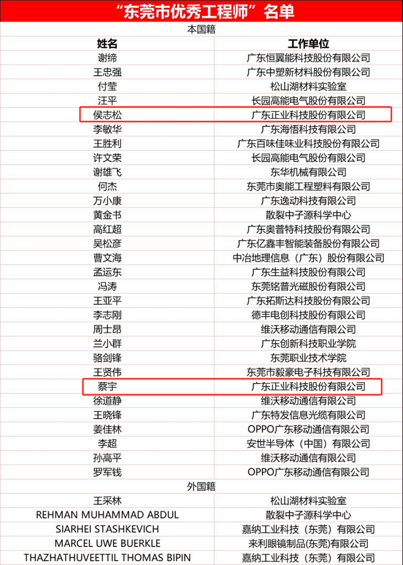 當(dāng)前,新一輪科技革命和產(chǎn)業(yè)變革正在加速演進,科技和人才成為國際戰(zhàn)略博弈主戰(zhàn)場。工程師是推動工程科技造福人類、創(chuàng)造未來的重要力量,是國家戰(zhàn)略人才力量的重要組成部分。在2024年12月8日舉行的“匠心鑄品質(zhì) 新質(zhì)創(chuàng)未來”東莞市工程師日慶典及“優(yōu)秀工程師”發(fā)布儀式上,經(jīng)過激烈的評選,從超過500名候優(yōu)秀工程師中選出35位杰出代表授予“2024年東莞市優(yōu)秀工程師”的榮譽稱號,以城市之名致敬工程師!廣東正業(yè)科技股份有限公司(以下簡稱正業(yè)科技)——蔡宇先生、侯志松先生,憑借其卓越的專業(yè)能力和顯著的技術(shù)貢獻(xiàn),榮膺此殊榮。